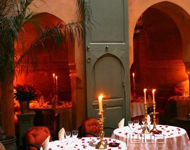 Le Tobsil餐廳的餐桌都放在一個露天的庭院中,只能容納50個人就餐。其中拱門下的9號餐桌看風景的位置最好。燭光能照亮的每個角落都洋溢著玫瑰花瓣的清香,在悠悠的吉他聲中,品嘗配有洋蔥和烤番茄的雞肉或是香氣四溢的烤羊腿。這里有摩洛哥最精致的佳肴。