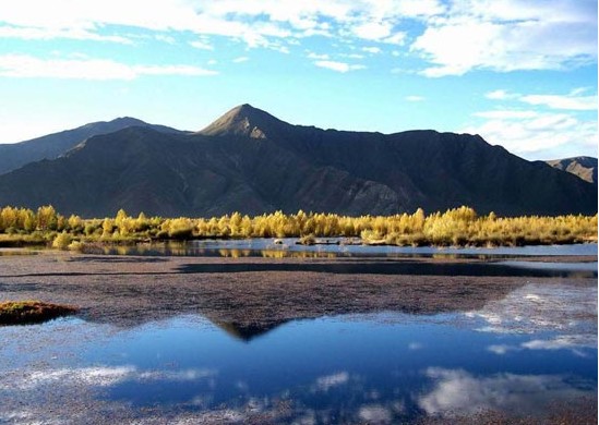 然烏湖周圍高山危聳峻峭,眾多海拔5000米以上的高峰皆有冰川發(fā)育;而山下近湖坡地則長滿了青翠蒼勁的松柏等針葉林叢,在這群山綠影環(huán)抱之中的然烏湖顯得格外靜謐而嫵媚,它那明鏡般的湖面倒映著四圍的雪峰、翠林和那藍天白云,景色異常迷人;再加上湖畔綠茵般的草灘上成群的牛羊以及一塊塊生長著青稞、豌豆、油菜等作物的農(nóng)田點綴其間,構(gòu)成了一幅既有青藏高原獨特的壯麗風貌、又有藏區(qū)田園牧歌般風韻的風情畫卷。當你沿著湖邊公路巡視暢游時,你就會充分領(lǐng)略到這里的風采,并讓你有種回歸自然的感覺,心曠神怡之極。