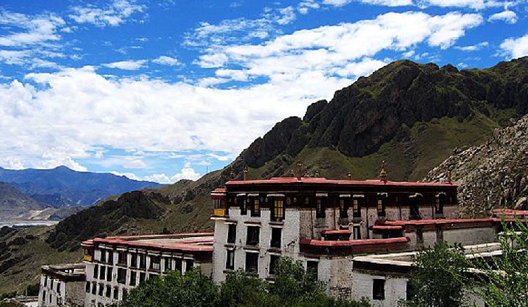 樓高3層,平頂宮堡式建筑,恢宏壯麗。殿內供有藏傳佛教格魯派創始人宗喀巴大師等人佛像,陳設豪華,供器甚多。明崇禎十五年(1642年),和碩特蒙古首領固始汗支持達賴五世打敗藏巴汗后,建立了格魯派統治政權,其政權機構即設于此。直到清順治五年(1648年)布達拉宮白宮建成,達賴五世由該處移居布達拉宮,政權機構也隨著轉移。后來,把格魯派統治的西藏地方政權統稱為甘丹頗章政權。