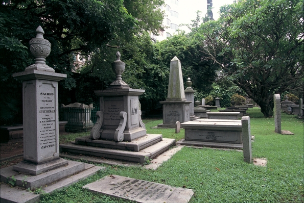 其中最有名的有英國艦隊統帥施厚仁,英艦“都魯號”總司令邱赤爾公爵,英駐華商務總監律勞卑,有居澳20馀載的英國名畫家喬治•錢納利(George Chinnery)、基督教第一個來華傳道的教士馬禮遜(Robert Morrison),故此亦稱馬禮遜墳場。一個半世紀前,具有特殊勢力的英國東印度公司澳門分公司,租賃白鴿巢的洋樓(即今東方基金會會址)作為職員宿舍,後在鄰近辟了這座墳場。