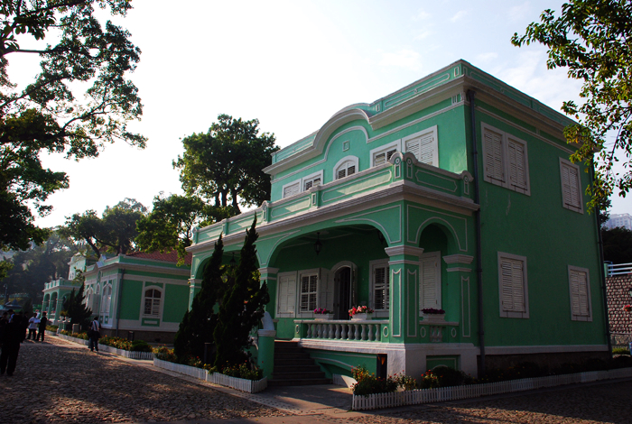 面臨大海的海灣,昔日曾是水上飛機的起落點。兩端圍繞著小山崗,風平浪靜、綠樹成蔭、環境十分幽雅。當初是葡國高級官員的官邸,后來澳門政府旅游司把它改建為博物館,1992年評為有建筑價值的房屋群,前三幢為博物館、后二幢為展覽館和迎賓館。特區政府成立,正式作為住宅博物館對外開放。