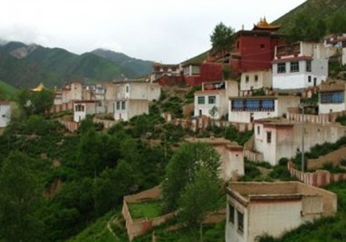 當卡寺全稱為(Damkar Lhundrub Dechen Chokhor Ling),位于青海省玉樹州藏族自治區首府結古境內東面約十公里處,倚山而建,勢如觀音靜息狀,下以八龍盤據之態,莊嚴神圣。