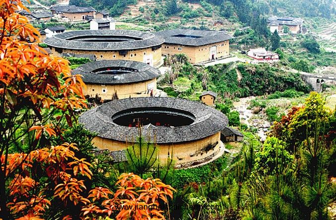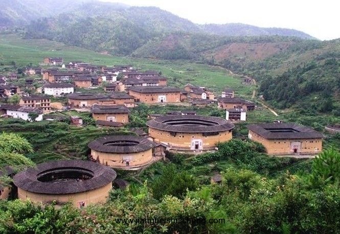 初溪村徐氏三世祖建于明永樂十七年(公元一四一九年),距今五百八十余年,為永定現(xiàn)存圓樓中年代久遠(yuǎn)又結(jié)構(gòu)特殊的一座。一般圓樓,小的設(shè)置兩處公共樓梯,大的設(shè)置四處樓梯,底層相通且層層環(huán)廊通達(dá),相互往來,版權(quán)所有山東聊城聊之旅國際旅行社有限公司,轉(zhuǎn)載必究!十分方便。唯獨(dú)此樓,按底層每戶從一樓到四樓各自安裝樓梯,各層通道用木板隔開,七十二道樓梯把全樓分割成七十二個(gè)獨(dú)立的單元。房間、樓梯、隔墻全用杉木材料構(gòu)建,全靠鄰隼頭銜接,不用一枚鐵釘,竟也穿越了近六個(gè)世紀(jì)的風(fēng)霜雨雪,與厚達(dá)二米的生土墻一起依然挺立。初溪土樓群形成于13世紀(jì)初,同樣依山而建,土樓與層層梯田構(gòu)成壯麗景觀,氣勢磅礴恢宏。初溪原名粗溪,意即粗溪,有著粗心大意的含義,由于寓意不好,所以改名--初溪。集慶樓堪稱初溪土樓群的代表,由經(jīng)營紙業(yè)的徐姓人所建,建筑規(guī)模比周遭的要大得多。土樓以隔板分隔成72個(gè)單位,與上述的土樓設(shè)計(jì)不同。與別處土樓不同的是,樓內(nèi)沒有水井,只能從樓旁的河邊打水,而且僅得一道大門,與其他土樓有3至4道大門不同。從對面山頭的觀光亭能一覽依山而建的初溪土樓群,土樓或大或小,或方或圓,一覽無遺,景象叫人陶醉。 在此后數(shù)百年間陸續(xù)夯造的土樓,所有的樓層都是環(huán)環(huán)相通的。集慶樓這種聚族而居又彼此獨(dú)立的模式,在動(dòng)蕩年代里,既消除單門獨(dú)戶的恐懼心理,又避免了一般土樓沒有私密空間過度嘈雜的缺點(diǎn),實(shí)在是兩全其美的創(chuàng)造性設(shè)計(jì)。集慶樓的房間、樓梯、隔門全用杉木構(gòu)建,相鄰處全靠隼頭銜接,不用一枚鐵釘,在穿越將近600年的風(fēng)霜雨雪后,依然與厚達(dá)兩米的生土墻一起巍然屹立,顯得古老而不破敗。