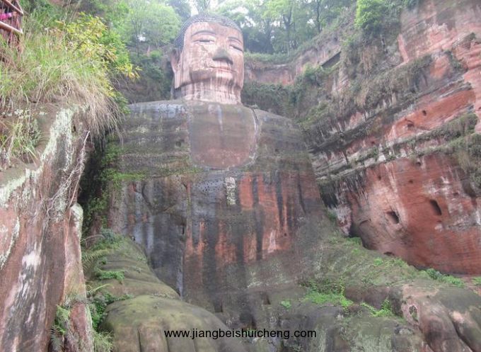 而今,梁柱和屋檐早已不見蹤影,而雄偉的大佛仍巍然屹立著。大佛兩側的巖石是紅砂巖,樂山的紅沙巖是一種質地疏松,容易風化的巖石,比花崗巖軟,是很好的適宜于雕塑的材料。但佛像雕好后,容易受到侵蝕、風化,樂山大佛就是在這種巖石上雕刻而成的。樂山大佛在近一千三百年的漫長歲月中,更是飽受自然風雨侵蝕和人為的破壞,以致佛身千瘡百孔,面目全非。