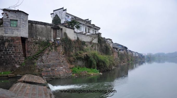 橫江在萬安南側(cè)由西向東流過,如練的江水由于東部古城巖的緣故,在這里作了弧形的彎曲。按照傳統(tǒng)的“風水”學說,橫江形成了萬安古鎮(zhèn)南面的一條“腰帶水”,為古鎮(zhèn)設(shè)置了理想的水環(huán)境。
