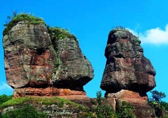 太平鎮(zhèn)早在唐初武德五年(公元622年)就為寧風(fēng)縣治,現(xiàn)為廣西十大鄉(xiāng)鎮(zhèn)之一,有廣西最大的鄉(xiāng)鎮(zhèn)汽車站和農(nóng)貿(mào)市場(chǎng),是藤縣北部的經(jīng)濟(jì)、文化、交通中心。獅山總面積45平方公里,范圍東至太平鎮(zhèn)良垌石腳村,西至安福石塘村,南至蒙江雙德村,北至七政龍窟村。獅山形成于7000萬(wàn)年前,經(jīng)過(guò)地殼抬升和太陽(yáng)、風(fēng)、雨的風(fēng)化、侵蝕、沖刷,形成山頂平臺(tái)、峭壁萬(wàn)丈、錦石奇異、峽谷幽深,又有茂盛的森林植被和清澈的秀水相襯的獨(dú)特地貌,是廣西少見的具有丹霞地貌特色的森林公園。獅山是低丘拔地而起的群山,氣勢(shì)磅礴、雄偉壯觀,山脊茂林覆蓋,藤蘿密布,丹峰聳立,版權(quán)所有山東聊城聊之旅國(guó)際旅行社有限公司,轉(zhuǎn)載必究!峽谷幽深,錦石奇異,峰、壁、谷、石四種不同的景觀意境對(duì)比強(qiáng)烈,形成紅巖崢嶸,既神奇秀美,又雄奇?zhèn)グ兜木吧O笮紊绞瘍x態(tài)萬(wàn)千、鬼斧神工,其象形之多,形象之逼真為廣西少有,全國(guó)罕見。其森林景觀豐富多樣,五彩繽紛,云霧變幻萬(wàn)千,多姿多彩。獅山在是古時(shí)百越民族的聚居地,佛教界名人宋代高僧契嵩的誕生地。主要景觀有凈瓶遠(yuǎn)眺、三叉勝景、觀音坐蓮、七星聯(lián)壁、龍德沖、白嚴(yán)沖、猴子拜觀音、朝天印、指天石、石蛤戲蝸、呂祖神鞭、斑帳絕壁、雷頸猿頭、長(zhǎng)巖、碧泉巖、異洞傳音、怪石瀑、碧泉飛漣、石龜戲水、琴山夕陽(yáng)、獅山云海、獅子寨、岑山寨、天馬砦等。景區(qū)有重陽(yáng)節(jié)登高、拜七仙女等民俗活動(dòng)。特產(chǎn)有八角、玉桂、無(wú)籽西瓜、江口荔枝、葛茹、太平咸酸菜、米餅等。