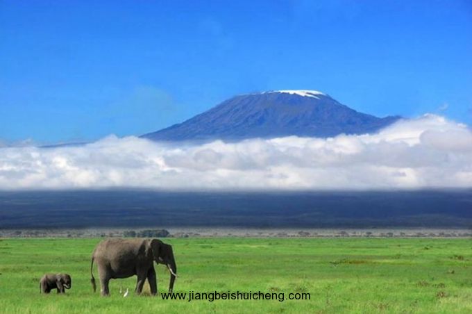 乞力馬扎羅山是坦桑尼亞的象征,山高19344英尺,是非洲最高的山峰,也是世界上適合步行的最高山峰。其底部的直徑長達40英里,峰頂?shù)幕鹕娇诒槐ǜ采w,蔚為壯觀。各國游客可到肯尼亞境內眺望此山,卻必須進入坦桑尼亞才可攀登。