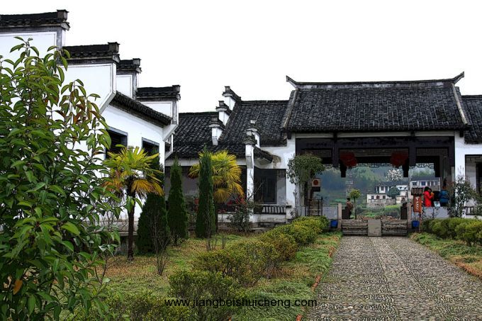 練江兩岸新辟有行知公園、黃賓虹公園、張曙音樂廣場、紫陽公園、新洲公園,教育家陶行知、畫家黃賓虹、音樂家張曙塑像屹立園中,以表故鄉人民紀念之情。公園內,亭臺花廊,古木綠茵,為居民休息和游客觀光之佳境。練江之濱,2005年始建西園,又稱徽商大宅院。是一處將明清民國時期徽商、官宦宅第園林整體或部分徽派建筑精品構件,重組為一體的建筑群落,凸顯徽風徽韻。占地面積1.3萬平方米,建筑面積9000平方米,精巧地布局了29幢屋宇,有500個房間,48個天井,106扇門戶,前圃后園,遍植名貴花木;回廊小巷,綿綿深深;護宅天溝,流水回環;映月池塘,碧波蕩漾;牌坊、小橋、亭閣、水榭、假山,散布其間,錯落有致。有五鳳樓、官廳、戲臺、家祠、學館等徽派特色建筑,徽派磚、木、石雕精品隨處可見。