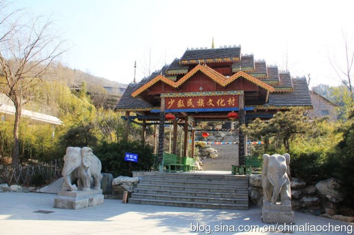 參觀完敬酒臺,我們接下來參觀我們的少數民族文化村,遠遠望見門口的石象,好像正在歡迎我們的到來