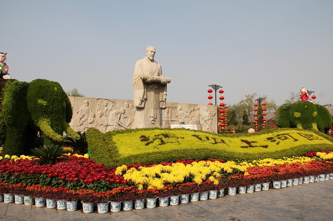 聽導游姐姐講,到秋季花開之際,漫步開封這座古城,無論你走到哪里,都可以看到鮮艷奪目的菊花,聞到沁人肺腑的花香。開封的菊花目前有數千種。開封種植菊花的記載可以追溯到1600多年前的南北朝。北宋時期,開封菊花就已經馳名全國。到了明清時代,開封養菊之風更盛,清朝乾隆皇帝來開封賞菊時親賦詩詞,留下“楓葉梧青落,霜花菊白堆”的美句,在開封禹王臺,至今還留有詠菊詩碑。一會兒要一睹風采……
