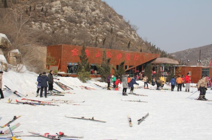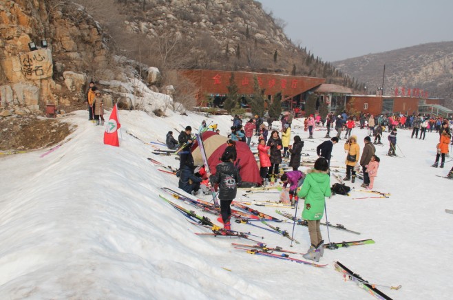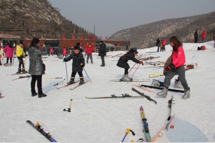 從飄揚的旗幟可以看出滑雪愛好者的重多!