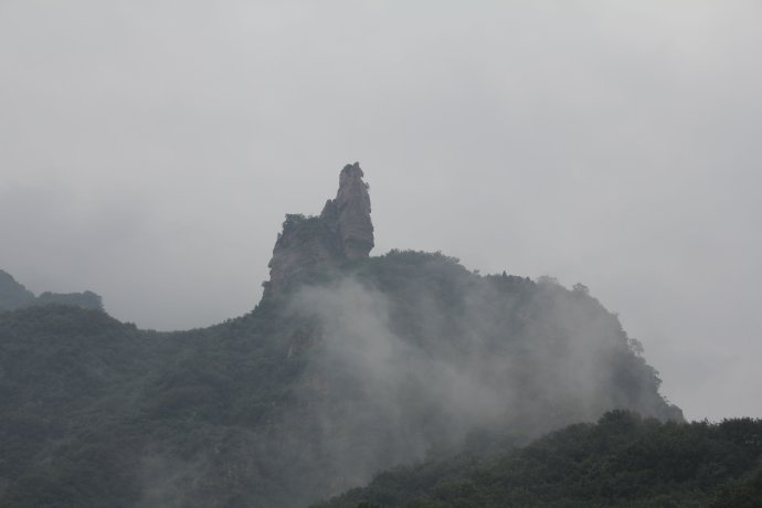 看對面山峰那個貌似頭戴方巾,長須飄胸的老者似乎在講著什么,那就是“老子布道”,真的好像老子端坐在那一樣。想爬上山看看呢。可是好高怎么辦?!誒!!~那是???