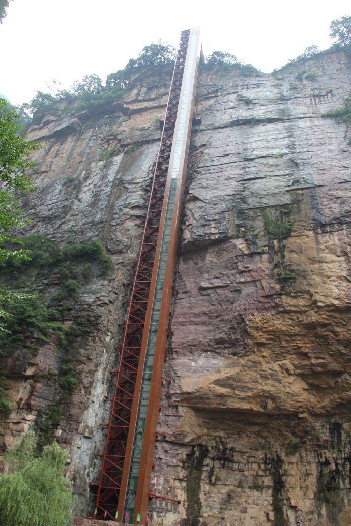 這個,嘿嘿,這個觀光電梯可比剛才的絕壁天梯文雅多了,只需要兩分鐘就可以一躍而到近兩百米的紅巖絕壁頂面,在不經意間我已經跨越了十五億的地質時空,哈哈哈,好爽。