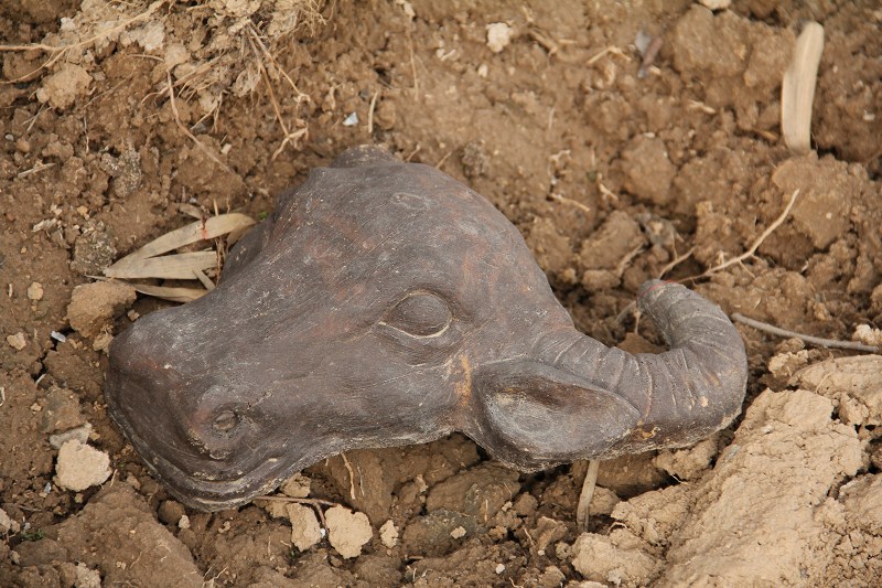 土里埋著的半個(gè)牛頭十分神秘