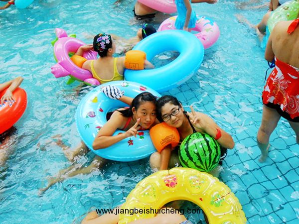 水池里人太多,我們?cè)谒剡吷虾蟼€(gè)影