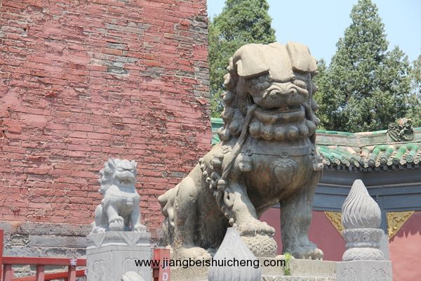 中華門外兩個石獅守衛,栩栩如生,為清代雕刻的代表作。東側雄獅口中,有直徑為15厘米的石雕圓球,西側雌獅前蹄按一小獅,工藝精巧,獨具匠心。