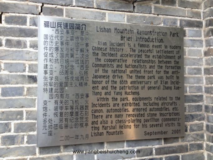 上山有臺階路3200多米,先來到驪山半山腰“斑虎石”處,便見兵諫亭,是為紀念西安事變而建。
