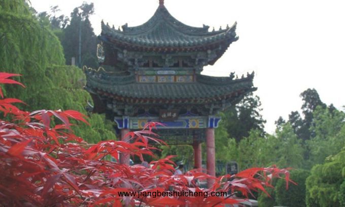 位于西繡嶺老君殿東,取“驪山晚照”之意。建于1981年,是一座重檐鉆尖頂方亭,站在晚照亭北側,可鳥瞰華清池、東花園、臨潼全景和渭水。驪山晚照是“關中八景”之一,據說,每當雨過天睛,云開霧散,驪山似一匹青色的駿馬,青翠欲滴,清晰可見,在夕陽下披上一層迷人的金色,更顯得琉光溢彩,撫媚動人。有詩曰:“日暮夕陽紅似火,疑似烽火自西來。”