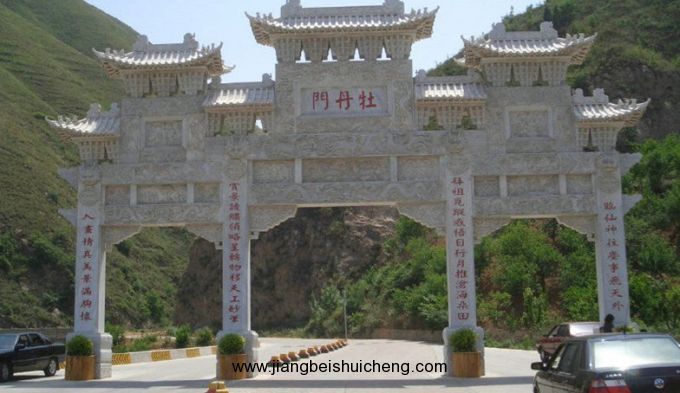 牡丹們的入口,牡丹們。從飲鹿槽向西,即是一條深溝大壑,當地人叫它牡丹溝。溝中有泉,名曰“美泉”。據說,用這股美泉澆灌的牡丹,花色特別嬌艷。唐玄宗喜歡牡丹,他曾在牡丹溝開辟牡丹園,由當時精通園藝的花師宋單父培植。據《花經》記載:“種花萬本,色樣各殊。”