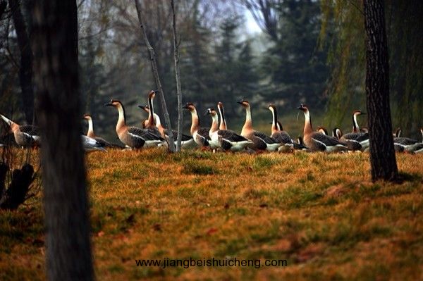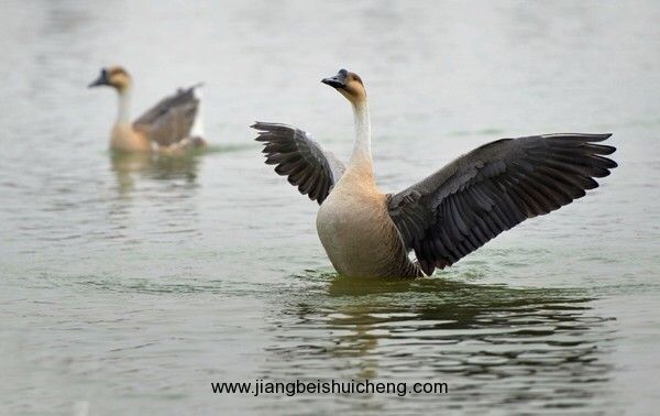 您看放飛島內羽毛為灰色,嘴巴為黑灰色,腳和趾為橙色的是灰天鵝,它還有一個美麗的名字叫鴻雁,這是目前景區內數量最多的候鳥;野生灰天鵝是國家二級保護動物。