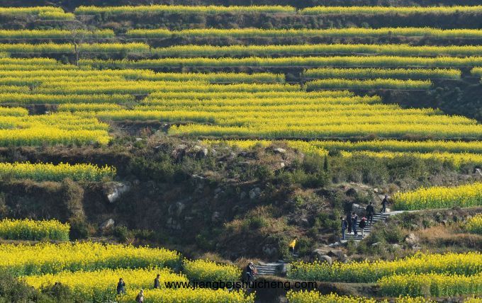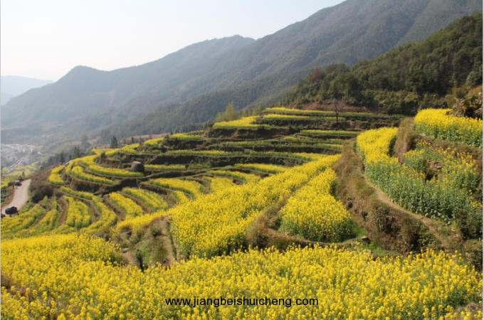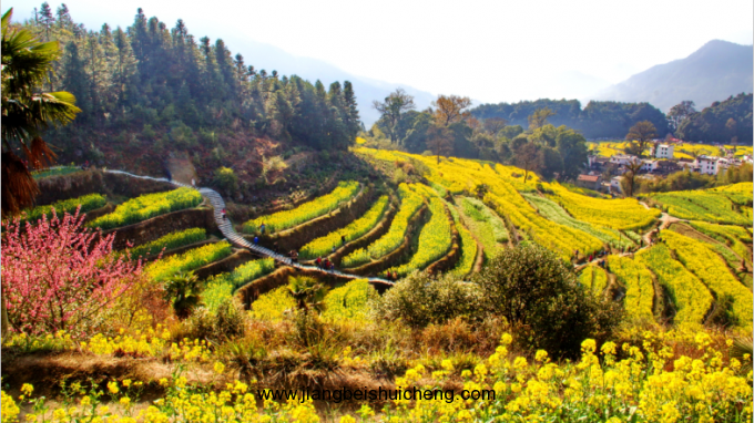 早起游婺源田園風光典型主題,江嶺是整個婺源春季油菜花攝影及游玩的精華所在,周五非周末時間,驢友較少,適合拍照。如天好,還有云霧日出可拍。若遇著雨天的江嶺,則更是云霧繚繞,宛如仙境,最佳攝影及觀賞時間即在此時。登頂江嶺之巔(約半小時,強度不高),花海梯田盡收眼底、一覽無遺。