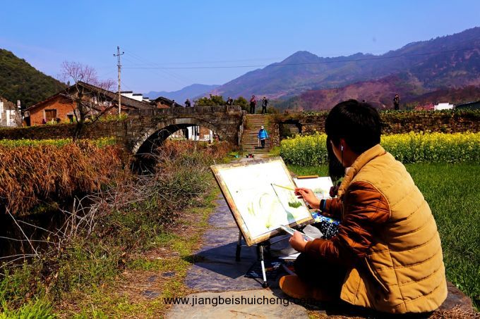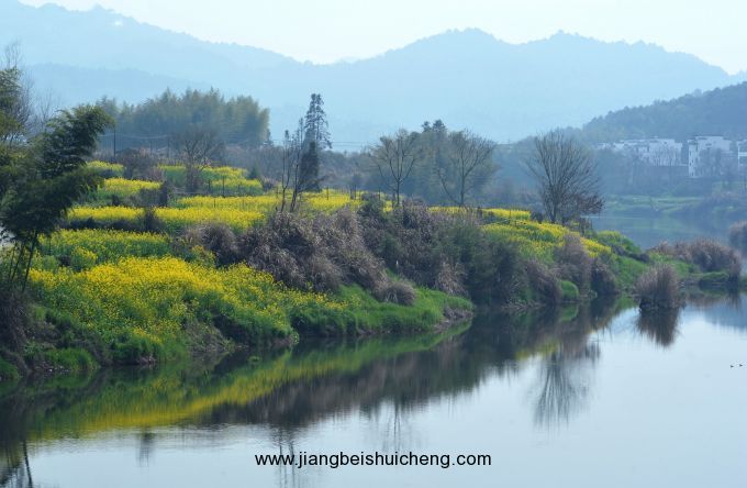 月亮灣坐落于李坑往縣城途中,離縣城五里左右,該村風景因江中有一江心洲如一輪眉月而得名,是攝影家鐘情神往的去處,若遇著煙雨天氣,月亮灣水霧蒸騰,有輕舟拂過水面,有如桃源仙境之感。攝影創作時間50分鐘。長灘村在清華去縣城路邊,因地勢緣故,俯瞰長灘景致絕佳,白墻灰瓦襯著大片大片的油菜花,儼然一幅重彩油畫,該地為許多攝影愛好者所獨鐘。