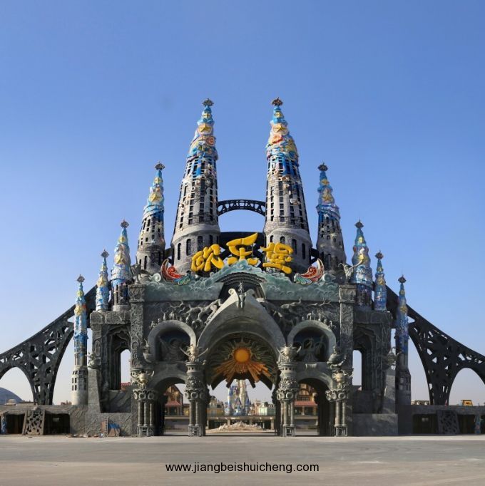 景區入口處——歡樂凱旋門,東西橫跨180米,高59米,是世界主題樂園中規模最大并充滿魔幻智慧色彩的地標性建筑,充分展現出世界之最的恢宏磅礴氣勢。