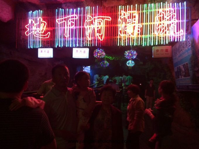 第二天游覽地下大峽谷,地下大峽谷最出名的游玩項目當屬地下漂流。地下河漂流項目經(jīng)過改造,漂流長度由原來的723米延長到1000米。該項目已經(jīng)得到上海大世界吉尼斯記錄總部的認證,被譽為中國最長的溶洞漂流項目[。漂流道的改造設(shè)計充分體現(xiàn)了溶洞內(nèi)的幽深莫測,起伏高下,波激浪涌,抑揚頓挫的特點和恐龍模型的陣陣吼聲,將地下河漂流的原生野始,驚險刺激演繹的淋漓盡致。