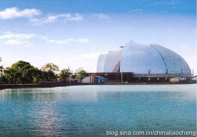 劇場的整體結(jié)構(gòu)造型設(shè)計新穎獨特,不僅傳承了中國傳統(tǒng)的建筑風(fēng)格,同時也傳遞了西方的建筑文化理念。劇場占地面積9900平方米,高度 33米,直徑86米。劇場下部為鋼筋混凝土底座,具有抵抗七級地震的能力。劇場上部為能夠旋轉(zhuǎn)的拱形鋼結(jié)構(gòu),外觀為一大一小半球形狀,兩個半球之間有過渡拱(3號拱)銜接。西面小的半球(1號拱和2號拱)是固定不動的。東面大的半球(4號拱)可以進(jìn)行水平方向180度的旋轉(zhuǎn)。中間3號拱可以東西平移。這種開啟、閉合的獨特功能在全國是獨一無二的,可以使觀眾充分領(lǐng)略到露天劇場與封閉劇院兩種效果的不同風(fēng)采。