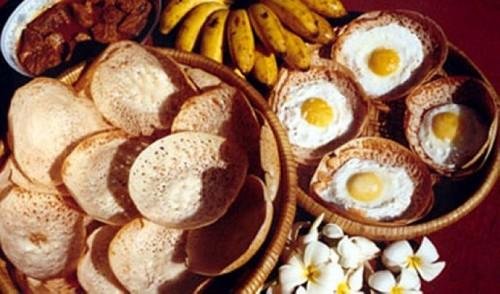 6.阿帕姆,在斯里蘭卡和印度西南部,阿帕姆(appam)是頗受當地人喜歡的一道早餐。圖片中碗形薄煎餅由米粉制成,食用時可以在上面抹上辣椒醬、蜂蜜或者椰子奶油,又或者放上一個煎雞蛋。