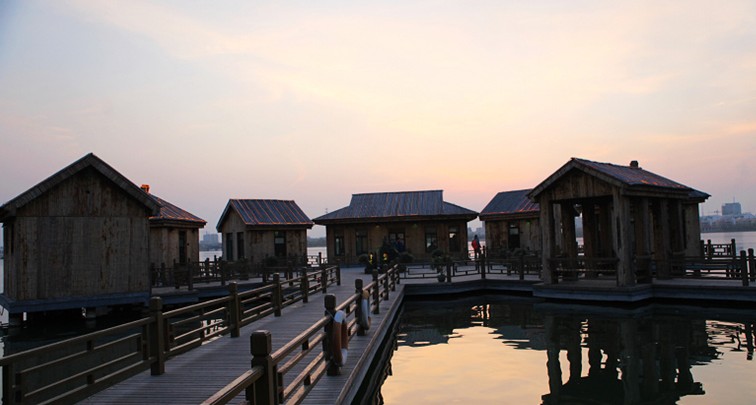 江北水寨位于聊城古城西側(cè),中國(guó)垂釣基地南面,整個(gè)水寨采用竹木結(jié)構(gòu),保留本色,全部建筑浮于湖水碧波之上,總建筑面積640余平方米。