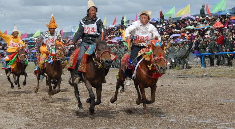 西藏那曲賽馬節:世界屋脊的況世盛會。在所有民間傳承的藏族節日中,幾乎少不賽馬。藏民在原始的日常生活中培養起對馬的濃郁情感,那即是對馬的神圣化、神靈化,認為馬能決定部族命運和部族領袖。