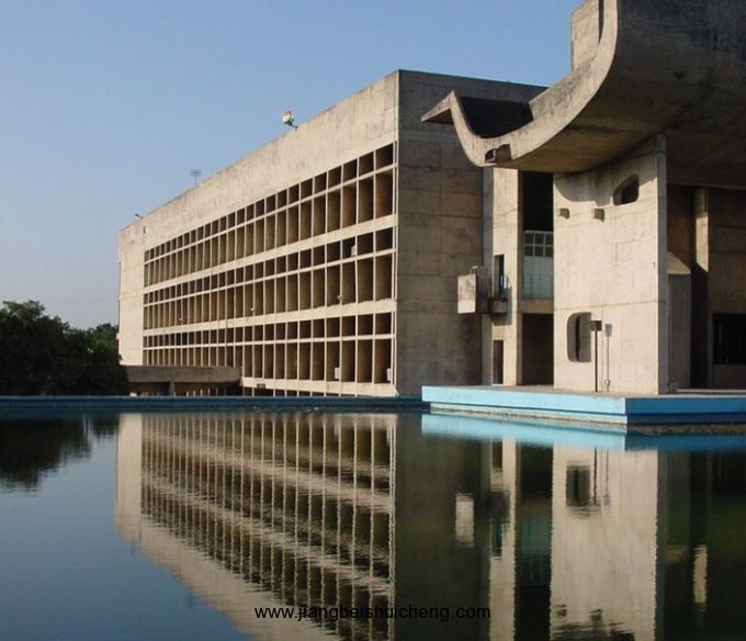 1922年,柯布希耶就曾提出過一個300萬人口的城市規劃方案,設想城市中有可以應用現代交通工具的整齊的道路網,中心區有摩天樓,外圍是高層和多層樓房,高樓之間有寬闊的綠地。之后,他為巴黎中心區、安特衛普、斯德哥爾摩和阿爾及爾等城市所制訂的改建規劃中都貫徹了他城市功能分區的原則:采用高層建筑以減少建筑占地面積,增加休息、體育活動用的城市綠地。道路按功能分級布置,有立體交叉等設施。然而這些方案總因種種原因而難以實現。直到上世紀50年代,柯布希耶終于在印度的這片荒原上實現自己的想法。