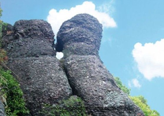 在羅漫山大石牌北端有一尊直徑約一丈,高約五丈的大石柱,它凸出石崖之外,下部同石崖連在一起,上部有分有合。從南邊看猶如一對(duì)年輕的情侶在接吻,從北邊看猶如兩位老人在接吻,所以人們稱(chēng)之為接吻石,人們認(rèn)為是神仙下凡變成的, 版權(quán)所有山東聊城聊之旅國(guó)際旅行社有限公司,轉(zhuǎn)載必究!是世界上獨(dú)一無(wú)二的奇特景觀,它同中國(guó)古代有關(guān) “伏曦兄妹造人民”的神話故事有關(guān),所以人們稱(chēng)之為天下第一吻或仙人接吻。人們說(shuō)接吻石是忠貞不渝的愛(ài)情楷模,它在演繹著千百萬(wàn)年流傳下來(lái)的愛(ài)情故事,人們看到它都會(huì)有所感觸,特別是熱戀中的情侶必會(huì)熱血沸騰、情感升華……讓天下有情人為之動(dòng)容!