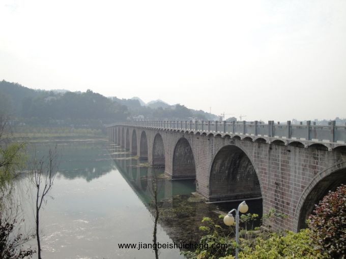 明代萬歷元年(公元1573年)興建石橋,橋洞九孔。