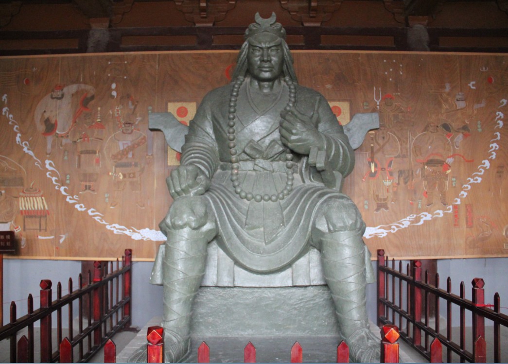 武松廟,看武松一手握拳,一手持佛珠,象征了他除暴安良一心向善。