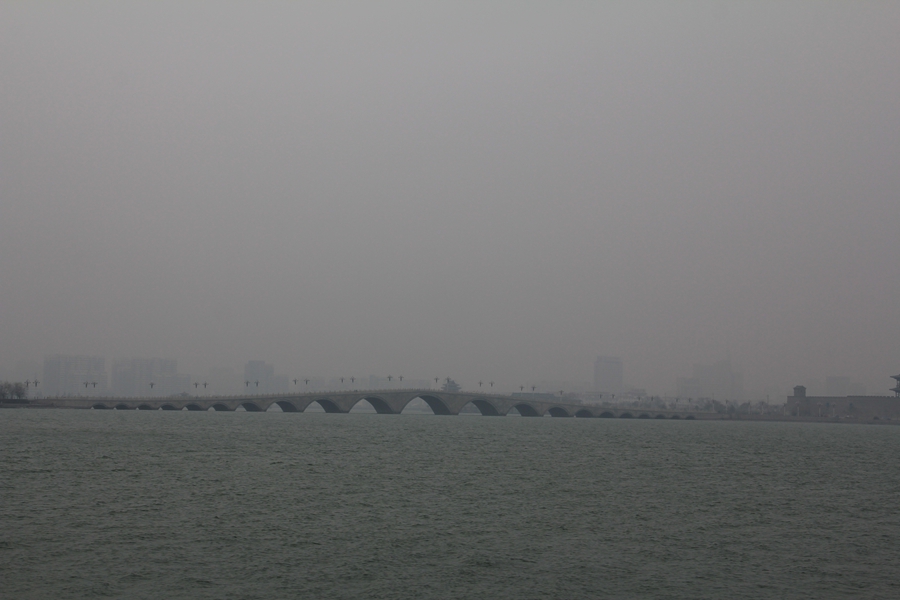 對了,是東昌大橋。東昌大橋全長322米,橋面凈寬15米。上部結構為石砌拱橋,共21孔,象征著跨入21世紀,所以又稱世紀拱橋。