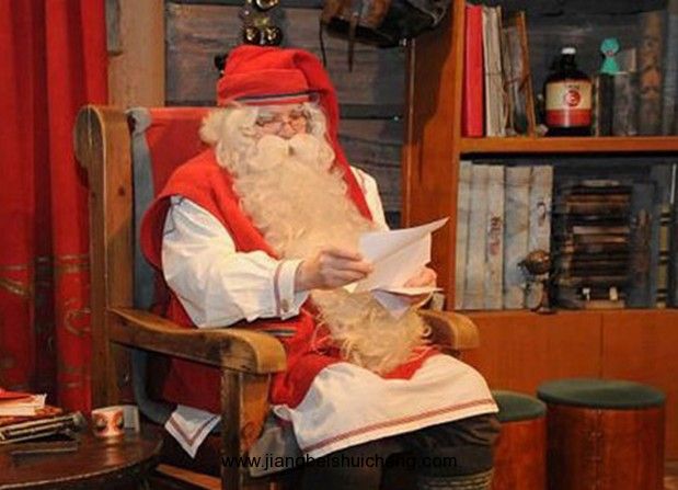 圣誕老人辦公室是所單層平房,是圣誕老人一年四季“長駐候教”的地方,屋內(nèi)布置像煞家居環(huán)境,墻飾擺設(shè)充滿圣誕色彩。圣誕老人的“工作”主要是跟客人拍照,十美元一幀電腦相。自己舉機(jī)拍照雖不禁止,但室內(nèi)非常昏暗,又不準(zhǔn)用閃光燈,而且不是該處的攝影機(jī)對(duì)準(zhǔn)時(shí),圣誕老人顯得非常“好動(dòng)”。辦公室一角是出售圣誕卡的地方,款式漂亮,不妨買幾張寄給自己或親友,在圣誕老人故鄉(xiāng)寄出的圣誕卡可是意義重大,何況還會(huì)印上稀有的圣誕老人郵戳。另外,旁邊的一張書桌,擺有好幾本冊(cè)子,不要忘了簽上大名留下地址,除了留個(gè)紀(jì)念外,每年圣誕節(jié)還可收到由圣誕老人寄出的圣誕卡呢!