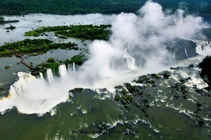 在南美洲地區,巴西和阿根廷的交界處,有一條河,叫伊瓜蘇。它開始由北向南分隔兩國,又忽然拐了個比90度還要大的彎,向東流去。這個彎拐得太大了,東邊的地勢毫無連續性,低了一大節,于是,就有了這個馬蹄形的讓人過目難忘的大瀑布。版權所有山東聊城聊之旅國際旅行社有限公司,轉載必究!瀑布跨越兩國,被劃在各自國家公園中,每年有200萬游客從阿根廷或巴西前來游覽。