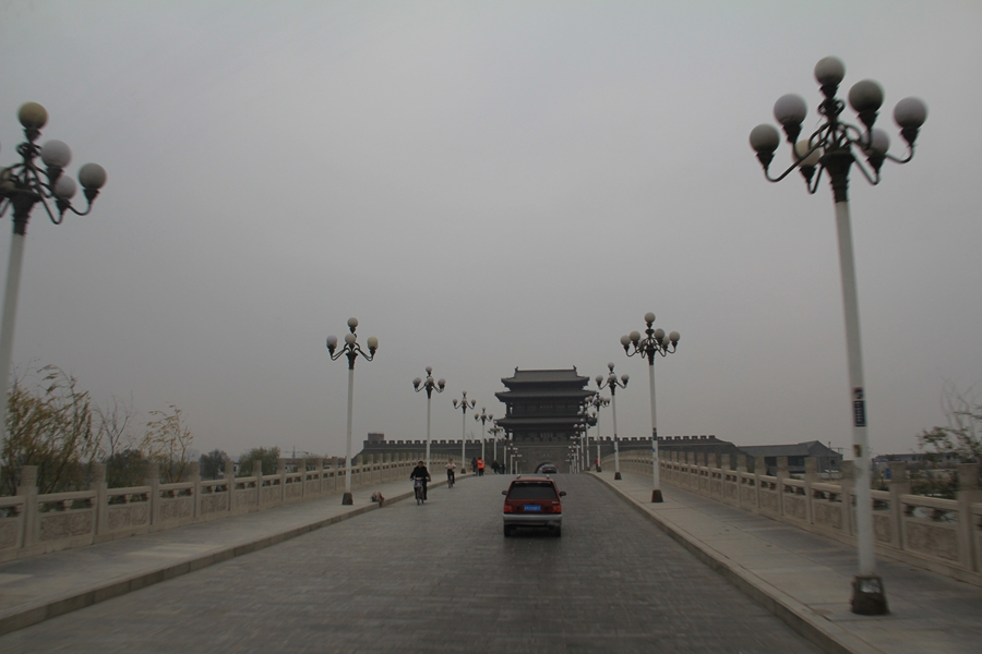 呵呵,要上橋了似乎有種錯覺我們的車可以開上城門。