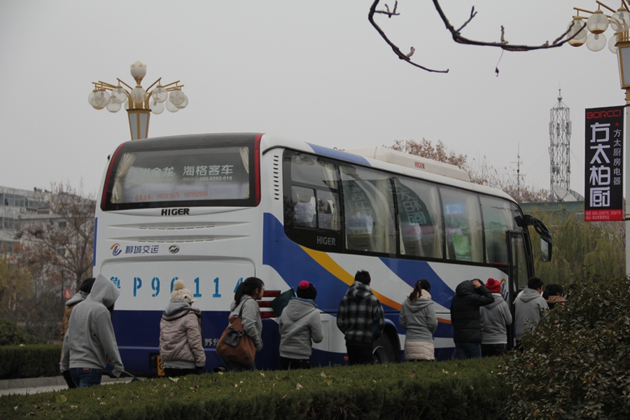 一天的行程到此結(jié)束,導(dǎo)游計(jì)調(diào)組的成員有序排隊(duì)上車。