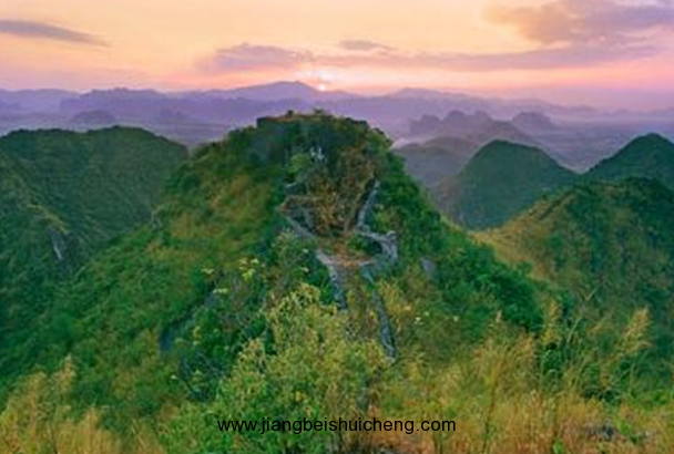 登上將山之巔的“連峰”,只見石砌的炮臺古堡,傲然屹立,崖間的戰壕蜿蜒于山梁之間,和古堡緊緊相連。這延綿三十余里的炮臺群,不啻是鑄在西南邊境的“萬里長城”。來到炮臺,從石梁飛架的“相臺”之門入去,左有“兵房”,是十米見方的石室,室之左右,有“藥局”,室之正前,置“子庫”。出兵房,過掩體,上石階,便到炮臺。當年蘇元春購置的德造遠程鋼炮,雄峙其上。炮臺前方的山峰,高筑瞭望臺,以窺敵情;東峰設東哨,南峰設南哨,戰壕溝通,前呼后應,可從容對敵。蘇元春設置的百三十門大炮,布防在西起憑祥、東至寧明的千里邊防線上,居高臨下,射界廣遠,千里一線,火力如網。威嚴的炮陣,曾經使得那些覬覦我國南疆之敵,望而生畏。將山東麓,群峰環抱,方圓數里,形似“山肚”。此地為當年蘇元春所部營盤。相傳蘇元春為解決軍隊的飲水問題,曾宴請村野父老,指點水源。有一不請自來之客,“自帶筷子”赴宴,版權所有山東聊城聊之旅國際旅行社有限公司,轉載必究!態度高傲,蘇元春笑臉相迎,以禮相待,多次殷切懇求,終于靠他找到了泉眼。水源不缺,軍心安定。蘇元春的不恥下問,一時傳為美談。