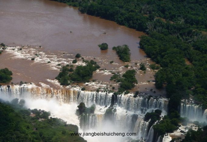 位于最西邊的是“魔鬼瀑布”,魔鬼瀑布最為氣勢磅礴,以排山倒海之勢直落深淵。轟鳴聲震耳欲聾。強烈的威懾力使人不敢靠近;“主瀑布”在中間,主瀑布高122米、寬約1800米,落差約93米。流量最大,中間有一條縫隙;東側是“馬蹄瀑布”,它因被巖石遮擋為馬蹄狀而得名;像巨簾一般的“彩虹瀑布”則位于“馬蹄瀑布”的東邊,空氣中的水點折射陽光,產生美麗的彩虹。彩虹瀑布即因時常可以從中看到七色彩虹而得名。水霧形成的彩虹遠隔20公里以外就能看到,彩虹經常在飛濺的水花中閃爍,并且能上升到305米的高度。在月色明亮的晚上,水氣更會形成奇異的月虹;“東瀑布”是最東的一段,該瀑布在旱季時往往是陡崖峭壁,雨季才成為掛滿千萬條素練般的瀑布。