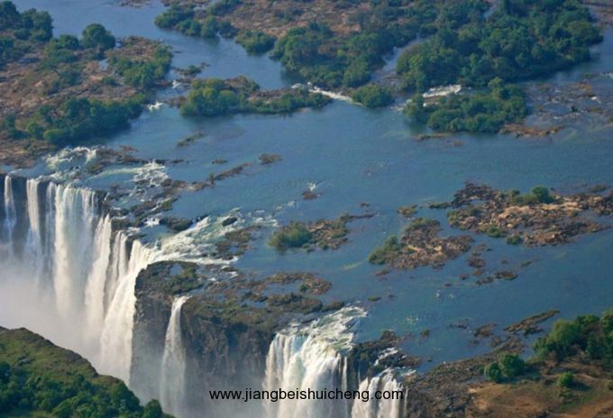 維多利亞瀑布的寬度和高度比尼亞加拉瀑布大一倍。年平均流量約935立方米/秒(33,000立方英尺/秒)。廣闊的贊比西河在流抵瀑布之前,舒緩地流動在寬淺的玄武巖河床上,然後突然從約50米(150英尺)的陡崖上跌入深邃的峽谷。主瀑布被河間巖島分割成數股,浪花濺起達300米(1,000英尺),遠自65公里(40英里)之外便可見到。每逢新月升起,水霧中映出光彩奪目的月虹,景色十分迷人。瀑布聲如雷鳴,當地卡洛洛-洛齊(Kalolo-Lozi)族居民稱之為“莫西奧圖尼亞”(Mosi-oa-tunya),意即“霹靂之霧”。據考證,遠在公元90年即有少數農業人口在贊比西河兩岸定居。版權所有山東聊城聊之旅國際旅行社有限公司,轉載必究!多數原住民則在距瀑布半徑128公里(80英里)范圍內以漁獵為生。今日當地部族有東加人、洛齊人、萊雅人(Leya)、托卡人(Toka)和蘇比亞人(Subia)。東加人每年在瀑布旁舉行雨祭,將黑色公牛扔入峽底祭奠河神。1855年11月16日,英國探險家利文斯頓(David Livingstone)抵達瀑布所在地,為第一個見到該瀑布的白人。1905年在瀑布附近的峽谷上建成跨度200米(657英尺)的拱形鐵路公路兩用橋。贊比亞一側建有兩座水電站,發電能力共10萬千瓦。維多利亞瀑布國家公園與李文斯頓狩獵公園形成瀑布地區。瀑布地區已成為非洲著名旅游勝地。
