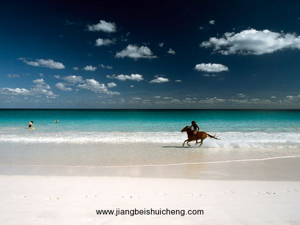 巴哈馬首都拿騷的海邊,一片粉紅讓人以為那里開滿了花兒,走近了,卻發現這竟然就是沙灘的顏色。原來整個沙灘都是由紅珊瑚被海水沖刷成的粉末構成的。即使是平日,拿騷的街市也充滿了歡快氣息,只要藝人鼓點一響,一秒鐘之間,花花綠綠的人們便潮水般涌來,又唱又跳!當你走在街頭,如果旁邊的帥哥靚女伸手過來說:“Hi,Dancewithme!”你可千萬不要驚訝啊!