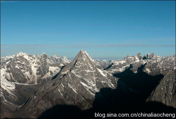 拍攝山景的照片最講究層次感的運用,如果山的形狀是不規(guī)則的三角形,那么拍攝特寫并不是最好的表現(xiàn)方法。這里可以借助群山,拍攝時截取環(huán)境中的一部分,讓山體呈現(xiàn)層巒疊嶂之勢,這樣形成的倒三角構(gòu)圖不僅使畫面更加活躍,同時也為雪山增加了神秘的氣氛。