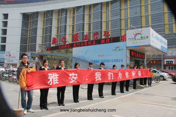 【網宣部】聊之旅旅行社21日上午10時在新東方廣場旗艦店開展“血脈相連、祈福雅安”千人簽字活動!聊城職業技術學院旅游協會21名志愿者參加活動!