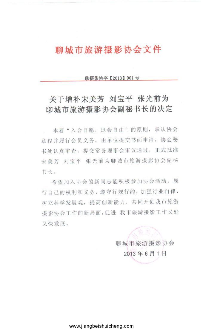 劉寶平擔任聊城市旅游攝影協會副秘書長