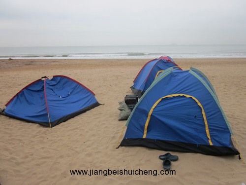 (在海邊用的帳篷):大一些,帶紗網(wǎng)能透氣的。防潮墊、氣墊,單層的薄睡袋就足夠了。