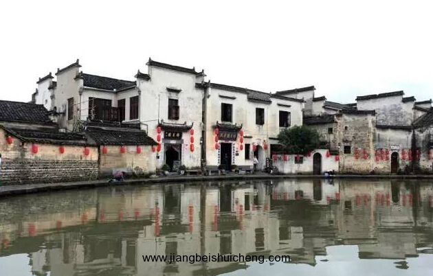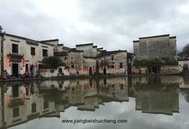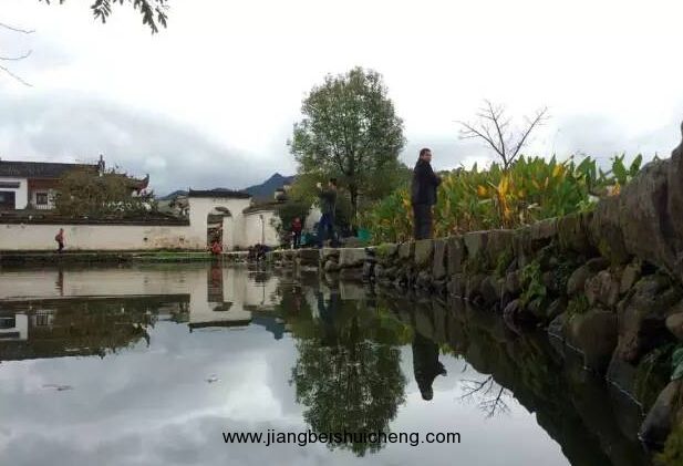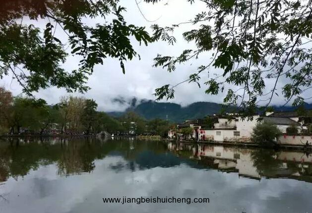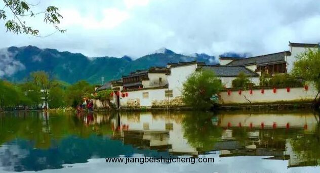 宏村為:山為牛頭,樹為角,屋為牛身,橋為腳”的牛形村落。